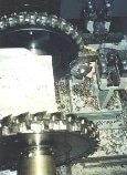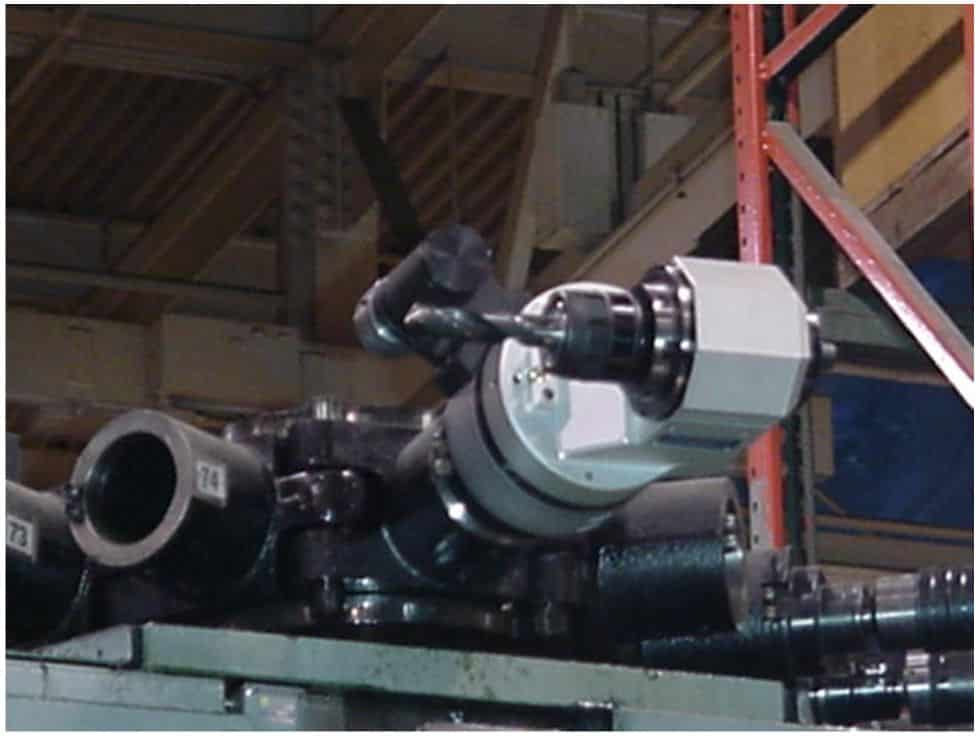Tools up to 5.5" diameter and 50lbs can be stored side by side in the tool chain. The tool chain allows for storage of oversize tools, up to 10" diameter (with adjacent pockets empty) and also longer tools. By adding a right angle tool to the machine's tool chain, the machine is able to work on more sides of a part. Extreme tooling can be accommodated on part fixtures and retrieved via the CNC part program.